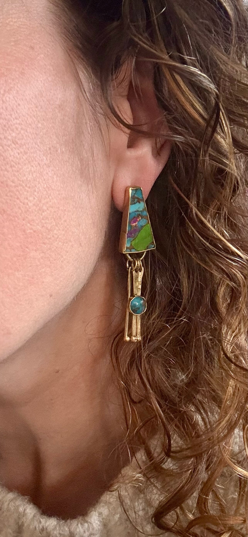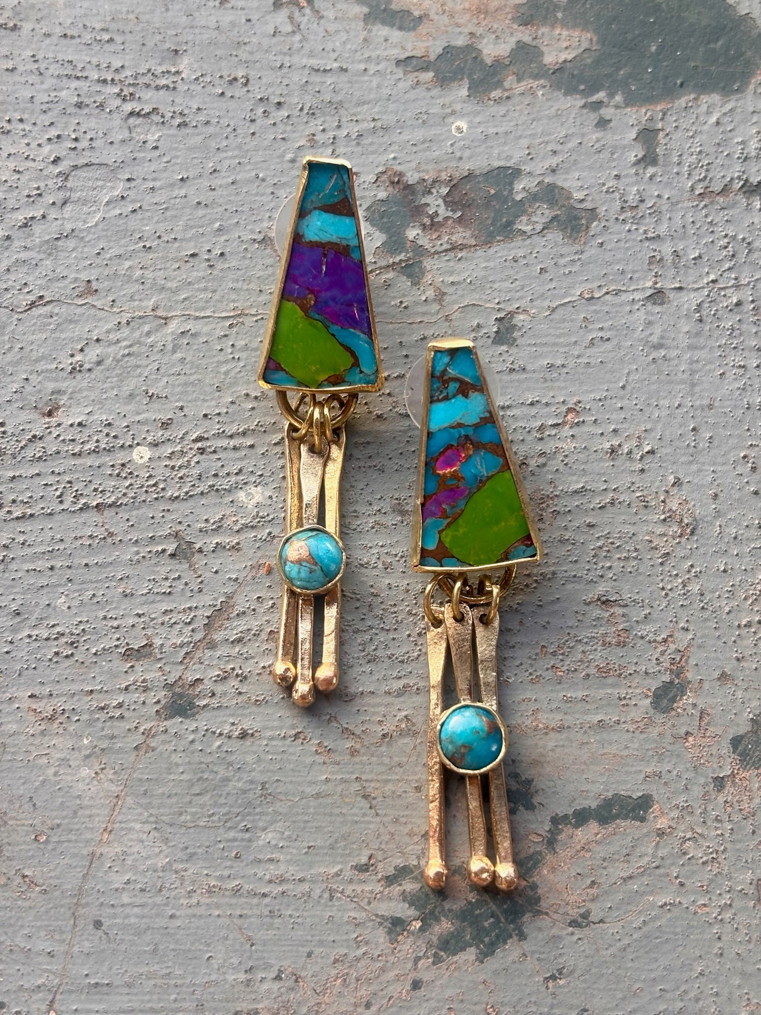 Brass and Oyster Copper Turquoise Earrings